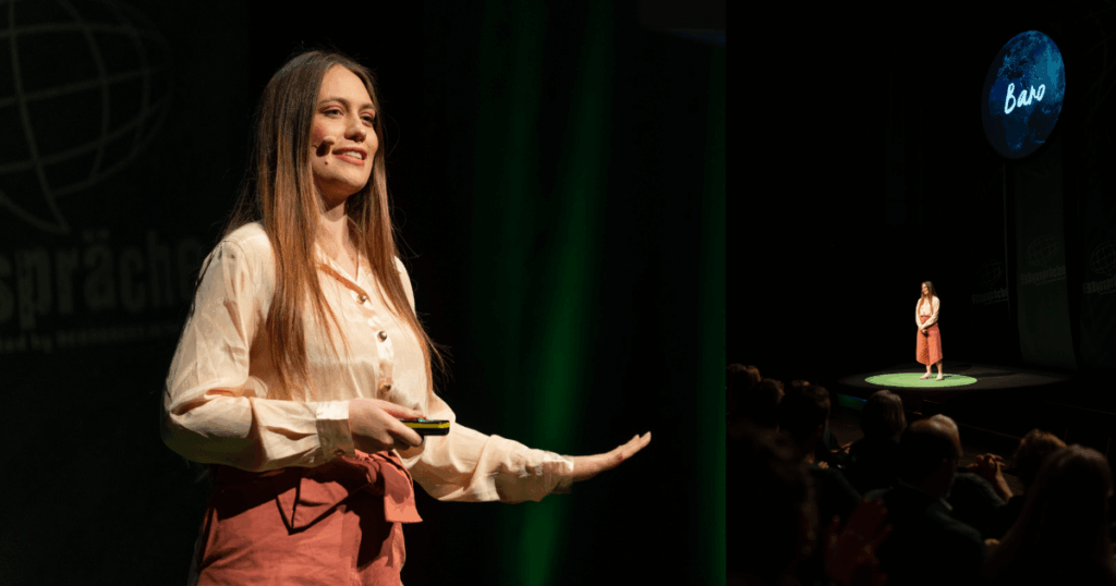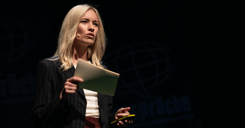 Die zweite Speakerin ist die Schauspielerin Valerie Huber. Sie spricht primär zur Generation Z. Einer Generation, der es richtig gut gehen sollte, da sie so gesund, so gebildet, sicher, frei und privilegiert ist wie nie zuvor. Wären da nicht die Krisen, Kriege, KI, Superreiche und der Klimawandel. Wir stecken, so ihre These, in einer menschlichen Krise. Wir haben “digitale Fomos”. Sind ängstlich, entfremdet von der Natur, den Mitmenschen, uns selbst. Wir haben es verlernt, Mensch zu sein. Als Ausgang nennt sie die Kooperation und ist der Meinung: Die Zukunft liegt zwischen uns.