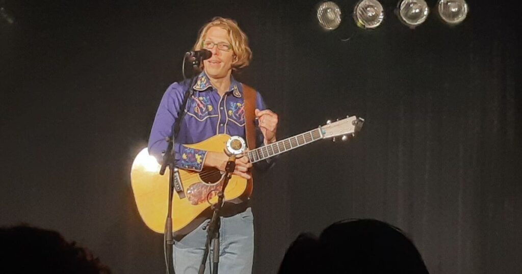 „Lieder, die lustig sind und manchmal ein bisserl traurig, aber das ist okay“ heißt das aktuelle Programm des Blonden Engels. Und sein musikkabarettistisches Schaffen ist genau das: lustig und manchmal ein bisserl traurig, aber das ist okay.