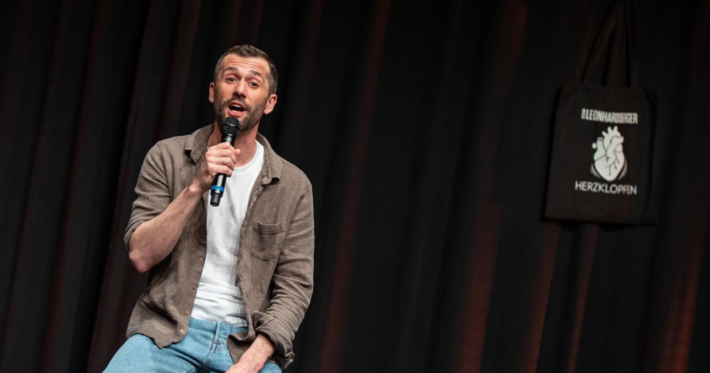 Stefan Leonhardsberger hat Herzklopfen. Auf der Bühne zu Beginn seines gleichnamigen Comedy-Programms, aber auch sonst öfter einmal. Vor allem, wenn er an seine Frau und die drei gemeinsamen Kinder (4, 7, 9) denkt. Ja, Leonhardsberger ist dreifacher Papa. Und das hat ihn erwachsen gemacht. Wenn der Nachwuchs nachts ins Ehebett klettert, ist das nur eine von vielen Herausforderungen.